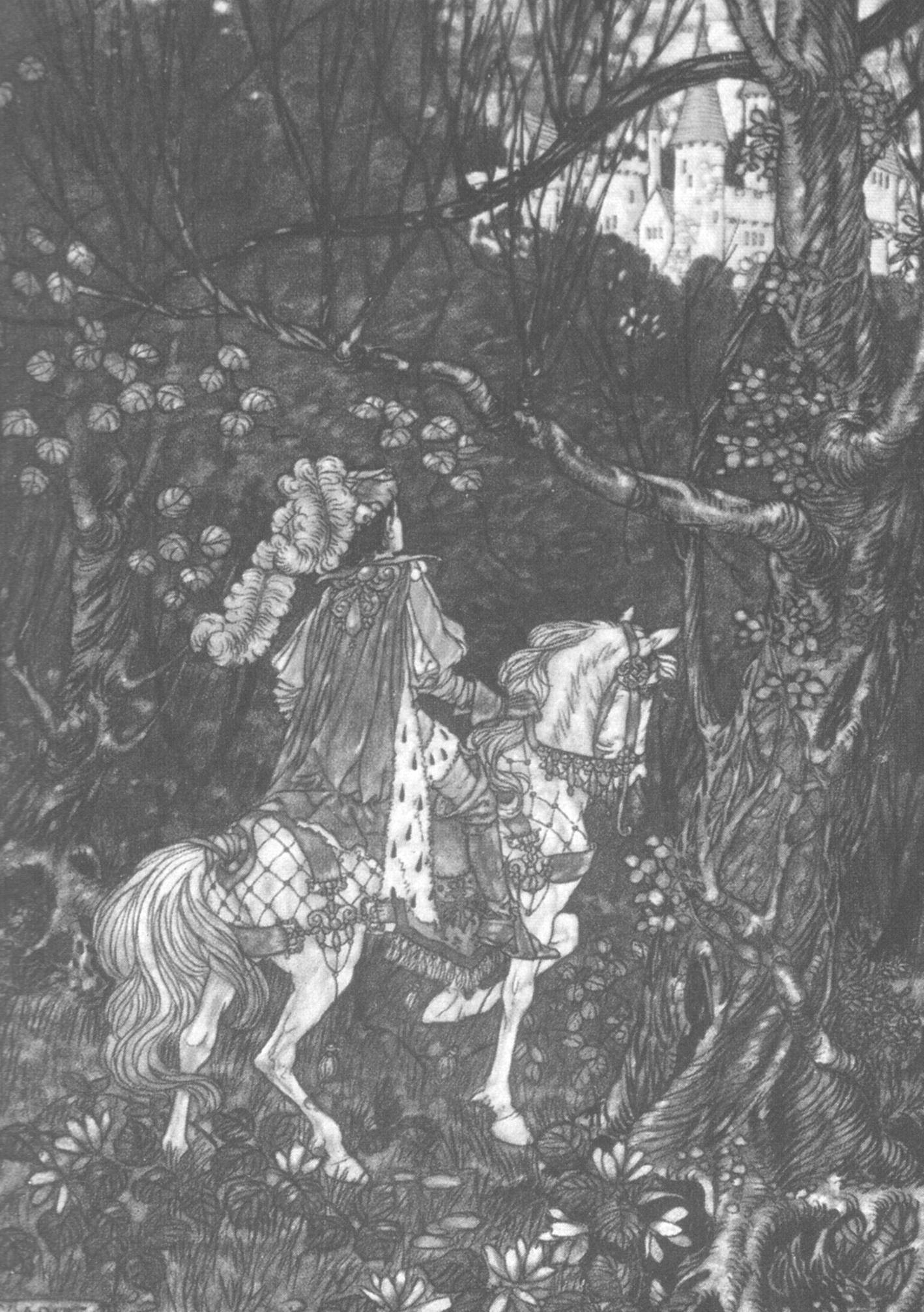 The royal woodsman took a mighty swing and his ax bit deep into the trunk. Again and again the woodsman swung the ax, and with each wedge of wood chopped away from the trunk there seemed to come from deep within the tree the sound of crying or perhaps laughing. Finally, when the tree appeared ready to fall, the royal woodsman turned to the prince and in a quivering voice said, “Your highness, I dare not…”