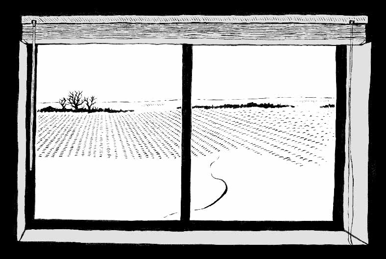 "A road baby... The summer before we hid in an empty cabin over on Tippeota after the dances." He stared out the window. "Old fool never caught on...till it was too late ... then he tore after me in that old Ford ... we spewed plenty of dust on that countryside..." He looked up at Cam. "Open the blind. I need the countryside...”